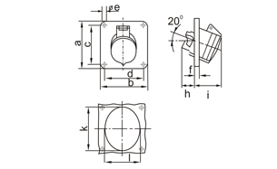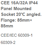 CEE 16A/32A IP44 Panel Mounted Socket 20℃ angled.Flange:85mm×85mm