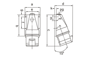 CEE 63A IP44 Panel Mounted Socket 15℃ angled. F...