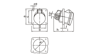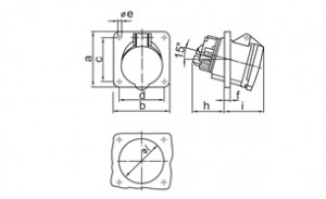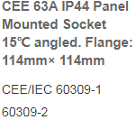 CEE 63A IP44 Panel Mounted Socket 15℃ angled.Flange:114mm×114mm