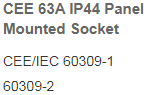 CEE 63A IP67 Panel Mounted Socket 15℃