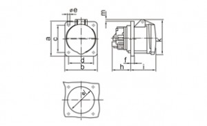 CEE 63A IP44 Panel Mounted Socket 15℃ angled.Flange:114mm×114mm